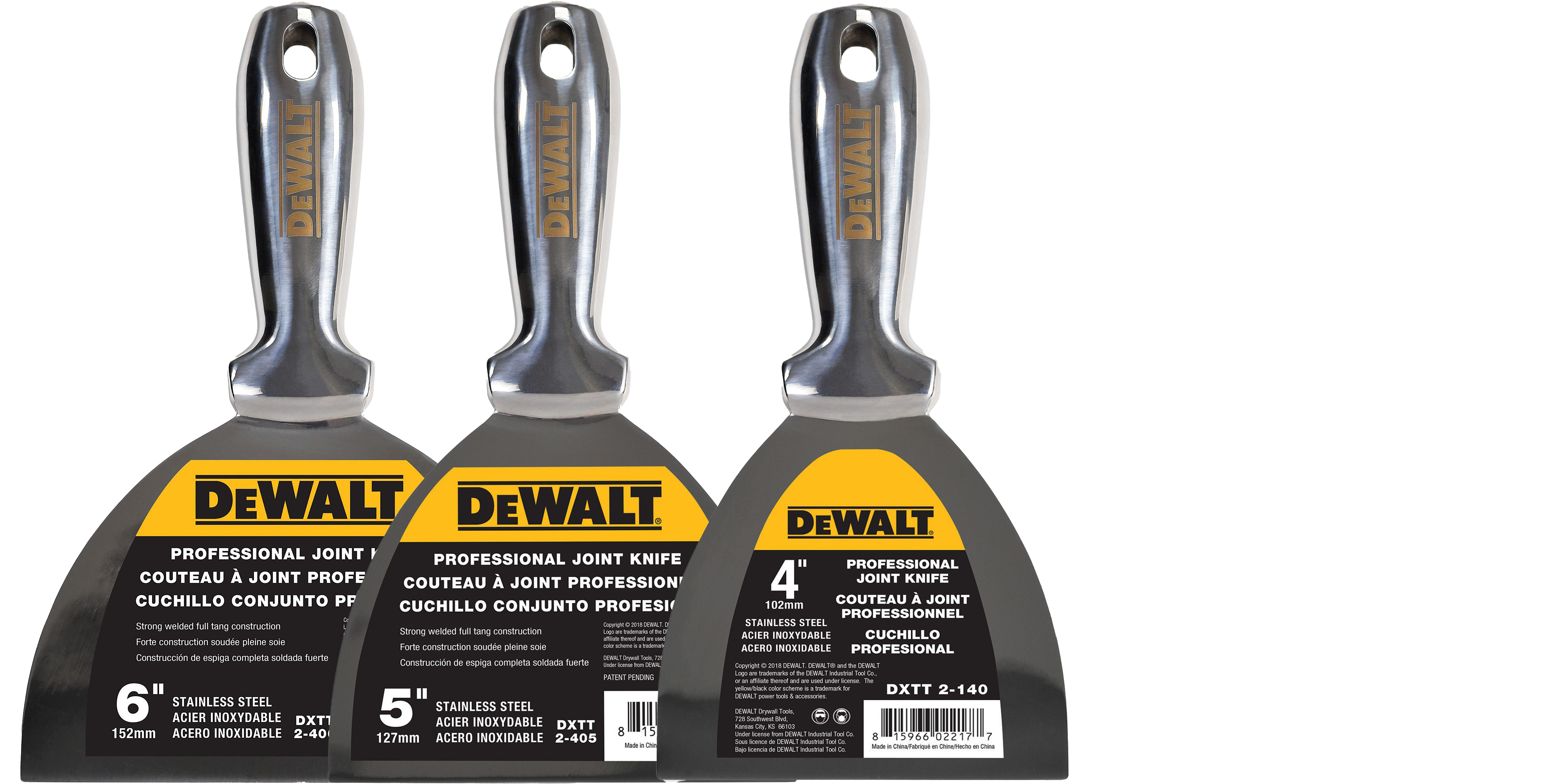 DEWALT All Stainless Steel Joint Knife with Welded Handle Set 4″, 5″, and 6″