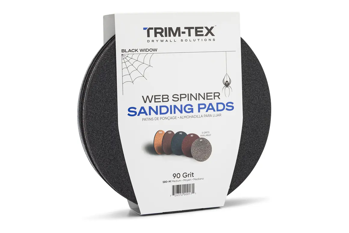 - These round pads are tailor-made for Trim-Tex’s circular Black Widow Web Spinner sander.